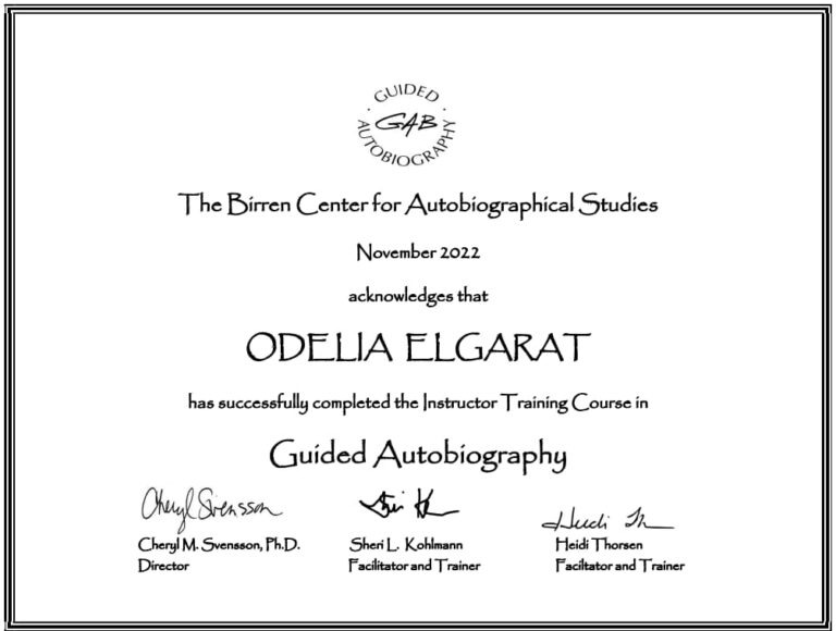 “Odelia masterfully sparks your creative writing skills while gently nudging you to dig deeper. She provides wisely selected videos, writing prompts, and exercises that will evoke your memories so that you can write your memoir.” –S